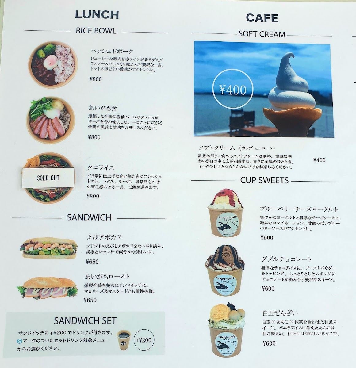 Overall, Machi Cafe is more than just a place to grab a bite; it’s a serene getaway that beautifully complements the wellness experience of the hot springs below. Whether you’re looking for a light snack or a refreshing drink, this café is sure to leave you with beautiful memories of Kaga's charm.